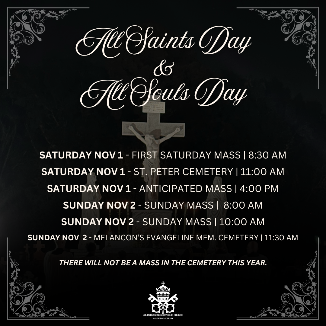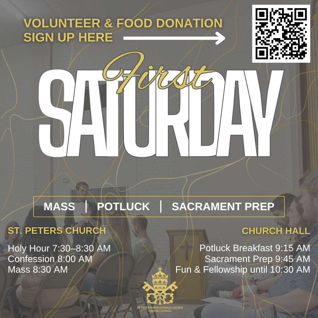 Feast of All Saints! All are invited to join us for our First Saturday Potluck & Catechism as we celebrate the Feast of All Saints! Bring your family, a dish to share, and enjoy a beautiful morning of prayer, formation, and fellowship.