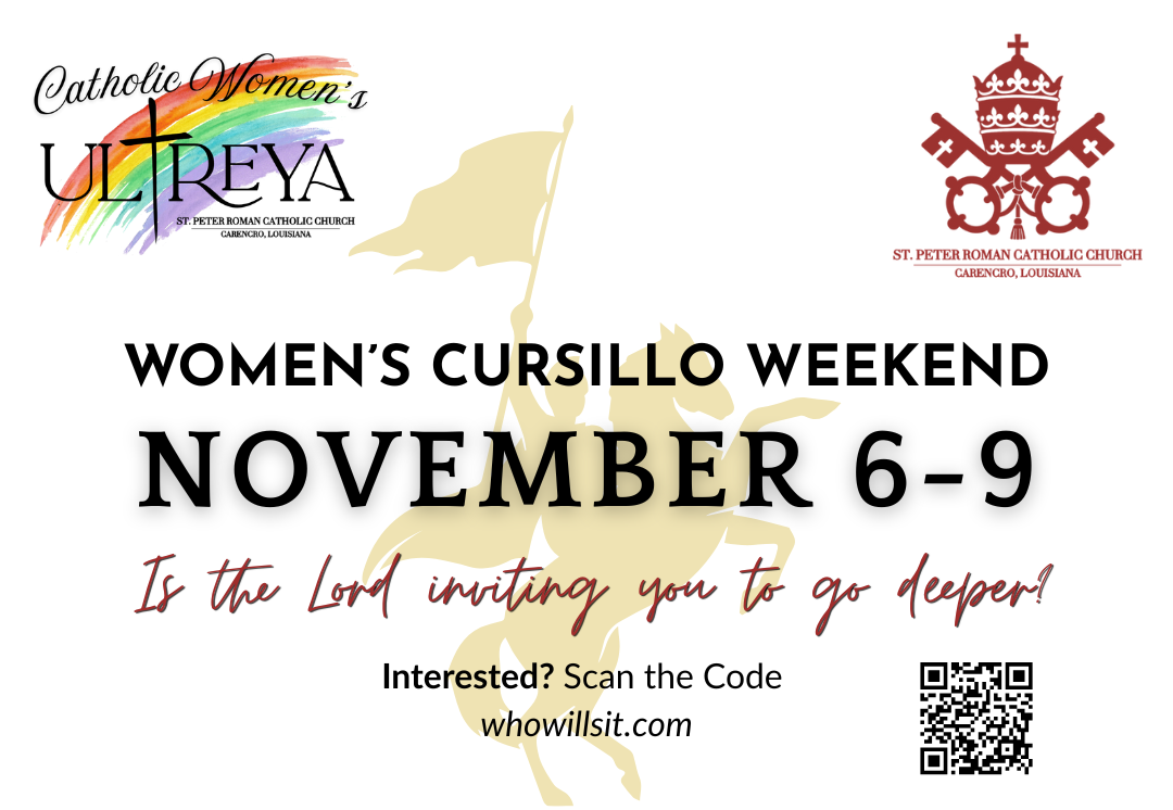 Theology of the Body Community of Acadiana invites you to dive into St. John Paul II’s beautiful teaching on human love and God’s plan for our lives. This four-part series will be held on Thursday evenings, Oct. 30, Nov. 6, 13 & 20 from 6–8 PM at Holy Cross Catholic Church in the Faith Hall of the Calais Center (Bldg. C).